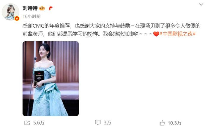 近日,“2025中国影视之夜”在上海举行。刘诗诗、梅婷获得2025“CMG年度推荐电视剧女演员”,于和伟、罗晋获得2025“CMG年度推荐电视剧男演员”。